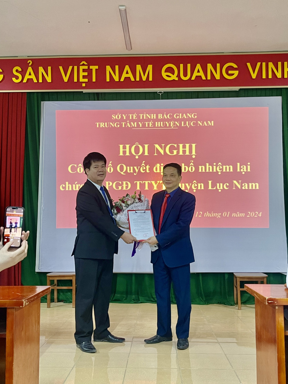 CHIỀU NGÀY 12/01/2024 TRUNG TÂM Y TẾ HUYỆN LỤC NAM TỔ CHỨC HỘI NGHỊ CÔNG BỐ QUYẾT ĐỊNH BỔ NHIỆM LẠI CHỨC VỤ PHÓ GIÁM ĐỐC TRUNG TÂM Y TẾ CHO ĐỒNG CHÍ LƯU VĂN HỒNG
