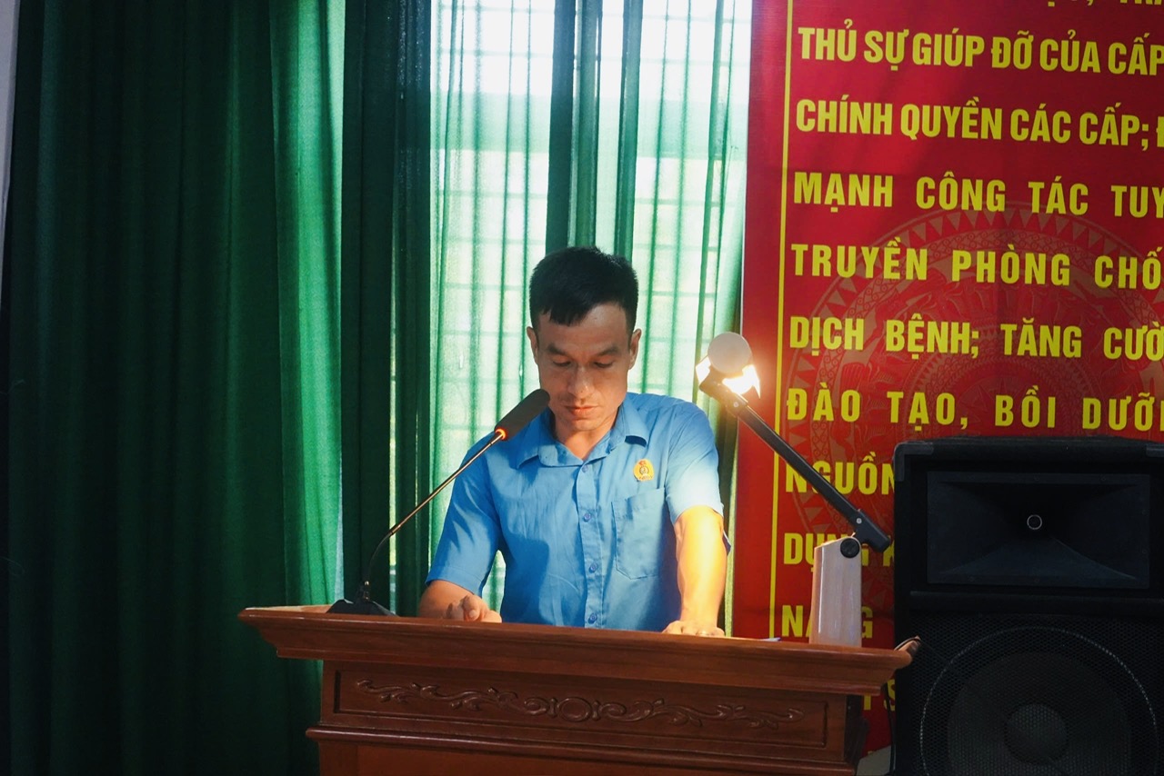 Đồng chí Nguyễn Văn Phương – Phó chủ tịch Công đoàn trung tâm Y tế báo cáo kết quả hoạt động Công đoàn 6 tháng đầu năm 2024, nhiệm vụ 6 tháng cuối năm 2024.