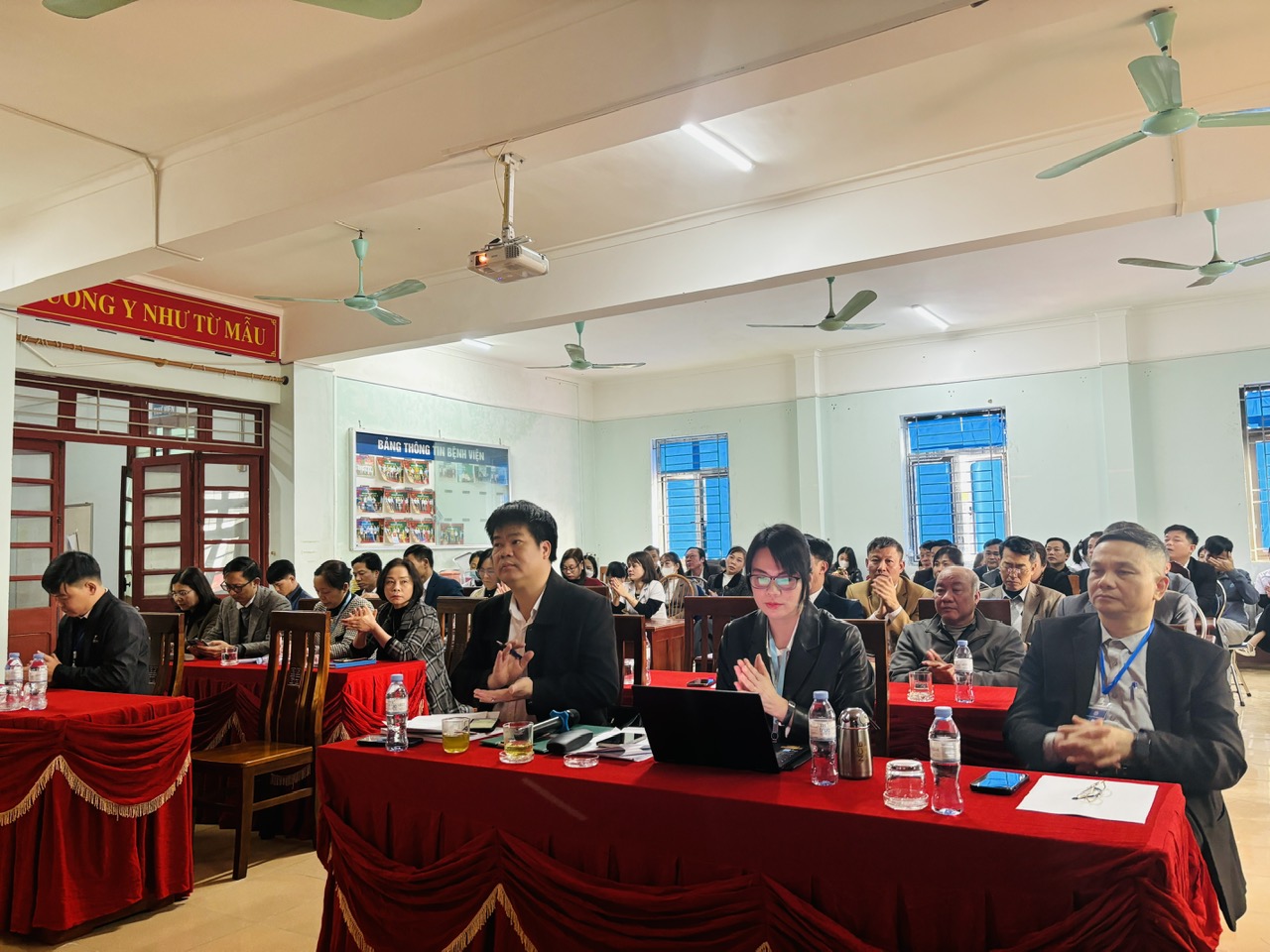 Hội nghị được nghe các ý kiếm tham luận trực tiếp tại hội nghị bàn ra các giải pháp thực hiện nhiệm vụ trọng tâm năm 2025, về công tác triển khai các dịch vụ kỹ thuật mới, công tác khám, chữa bệnh, công tác phòng chống dịch bệnh, tiêm chủng mở rộng, công tác quản lý điều trị bệnh không lây nhiễm, công tác dân số và phát triển, công tác duy trì và nâng cao điểm tiêu chí quốc gia và công tác khám chữa bệnh y học cổ truyền.