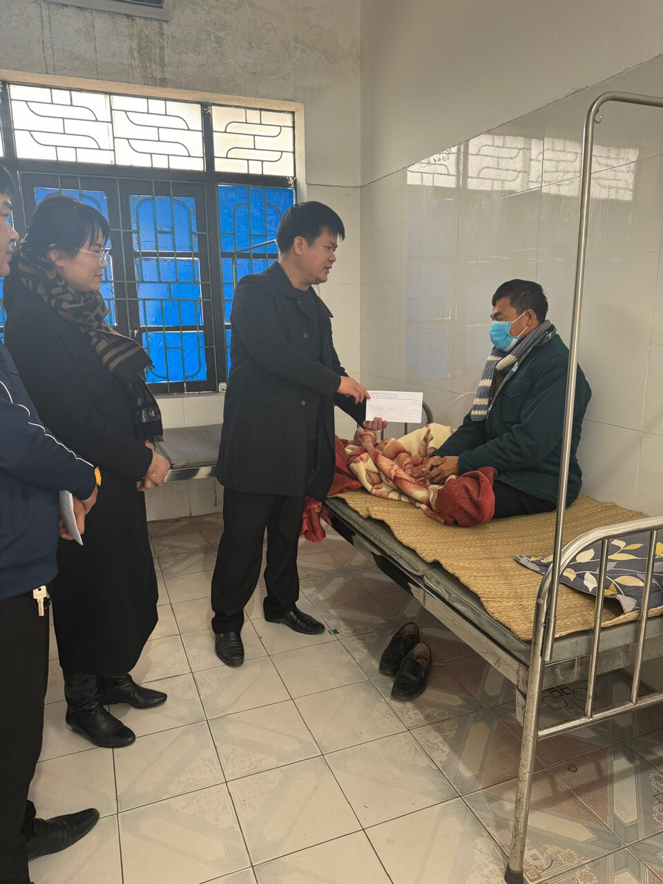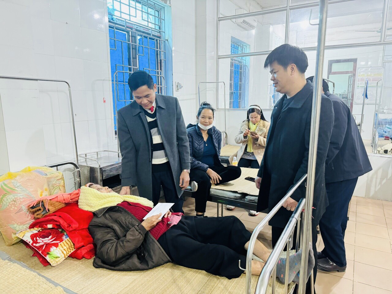 Lãnh đạo Huyện ủy, UBND huyện Lục Nam đến chúc tết và tặng quà cho bệnh nhân đang điều trị tại Trung tâm y tế.