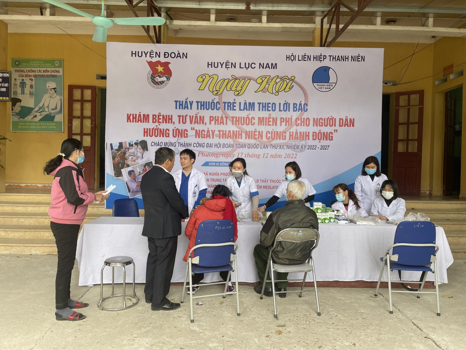 Sáng ngày 17/12/2022 Hơn 20 Y, Bác sỹ, Điều dưỡng, Kỹ thuật viên là đoàn viên thanh niên của Trung tâm Y tế huyện Lục Nam và Câu lạc bộ thầy thuốc trẻ huyện Lục Nam, đã ra quân tình nguyện tổ chức tư vấn, khám bệnh, siêu âm, điện tim, xét nghiệm phát hiện  tiểu đường và mỡ máu miễn phí cho 300 người cao tuổi tại xã Nghĩa phương.