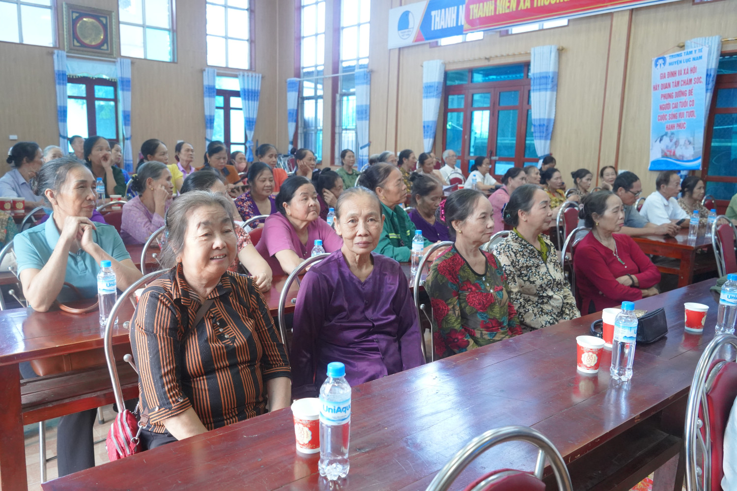 Tại hội nghị, cán bộ Trung tâm Y tế huyện Lục Nam đã tập trung tuyên truyền, giáo dục nâng cao nhận thức về các vấn đề liên quan đến người cao tuổi. Phổ biến những thông tin, kiến thức khoa học, các vấn đề liên quan đến sức khỏe người cao tuổi với một số mặt bệnh điển hình như tăng huyết áp, đái tháo đường,… cũng như các kỹ năng phòng bệnh, chữa bệnh và những lợi ích thiết yếu trong việc theo dõi, quản lý và khám sức khỏe định kỳ.